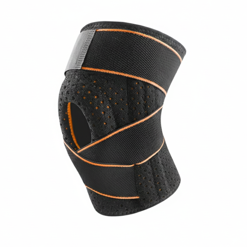 Constructed with high-density breathable neoprene and perforated fabric, this knee brace offers excellent airflow, sweat control, and long-lasting comfort. The wrap-around adjustable straps provide targeted compression and a secure fit, while reinforced stitching improves durability for repeated high-intensity use.