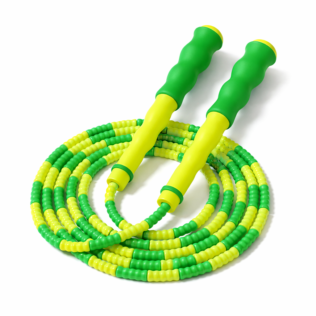 Scale your brand with our factory-sourced beaded jump rope, optimized for rhythmic training, coordination drills, and competitive playground activities. This traditional design employs shatterproof PE segments strung over a high-tensile nylon core to produce audible feedback for timing mastery. The soft TPR rubberized handles integrate wave-textured ridges for superior traction, appealing to middle-schoolers, coaches, and sports clubs.